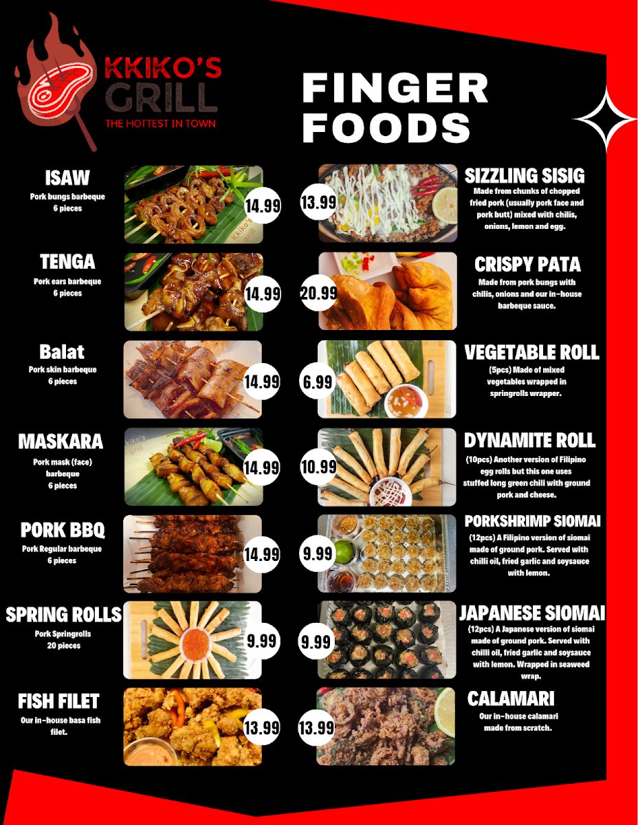 As you peruse the menu, you'll discover an array of mouthwatering barbecue options that are sure to dazzle. One of the standout items is the Isaw, featuring twelve skewers of perfectly grilled pork bungs that are delightfully smoky and served with zesty vinegar for dipping—perfectly satisfying for any meat lover. Craving something unique? Try the Tenga—twelve skewers of tender pork ears that offer a delightful crunch with every bite, or the Maskara, with its succulent pork face barbecue, each skewer brimming with flavor. Kkiko's also offers a selection of Frozen Products for those looking to enjoy the barbecue experience at home, all accompanied by a complimentary basting sauce that adds an extra layer of deliciousness.